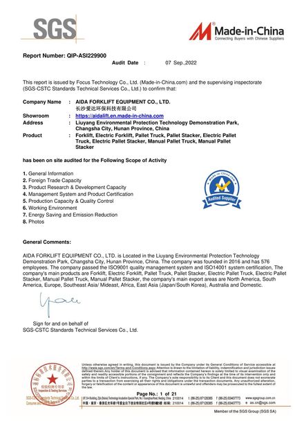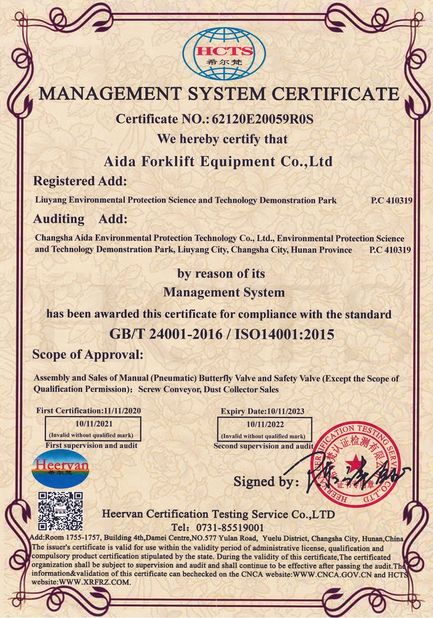 AIDA ha establecido un estricto sistema de garantía de calidad y ha aprobado la certificación ISO9001, ISO14001, SGS y CE.